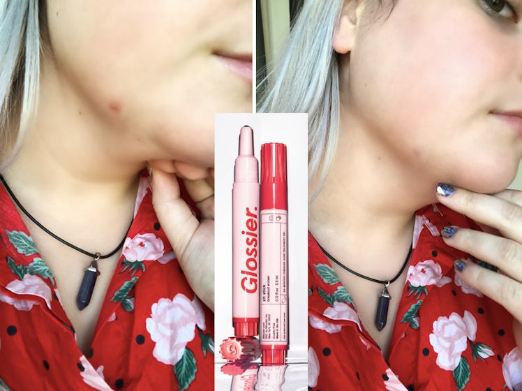 Glossier says it's totally fine to use the pen up to three times per day, so you best believe I whipped that baby out again mid-day and repeated my thorough examination process. (I'm low-key blaming Glossier for me not getting any work done, sorry not sorry.) By the end of the day, I could feel that my pimple was definitely less raised and less red. It didn't mysteriously disappear as I secretly hope for but knew wouldn't happy, as a small spot still remained on my jawline; however, the difference in size and feeling, for me at least, was completely noticeable: