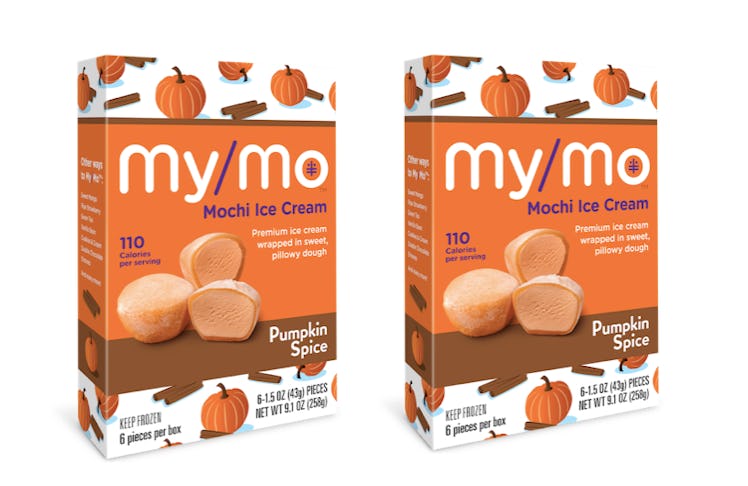Frozen dessert brand My/Mo Mochi Ice Cream is gettin' ~spicy~ this upcoming fall with a brand new limited-edition flavor. If you'e not familiar with the treat, it's described on the box as "premium ice cream wrapped in sweet, pillowy dough." As of early September 2019, according to a press release, fans of all things fall will be able to get their hands on two seasonal flavors. And you'll be happy to know that the first is none other than Pumpkin Spice.
