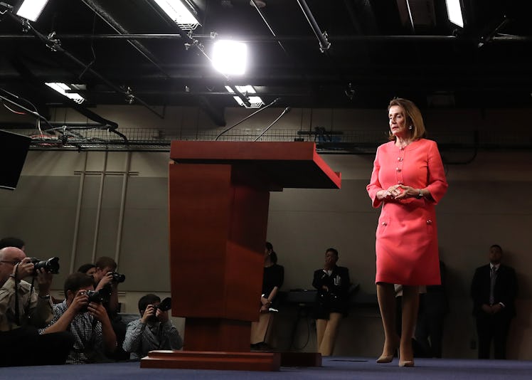 "He’s becoming self-impeachable in terms of some of the things he’s doing," Pelosi told The Washington Post, mentioning his refusal to comply with subpoenas. She did not elaborate on what she meant by "self-impeachable," and did not directly answer a following question on whether she would consider a "narrow" impeachment option for the president. Elite Daily reached out to Pelosi's office for further comment on the statement, but did not hear back in time for publication. As of publication, there have been no serious moves to impeach Trump.