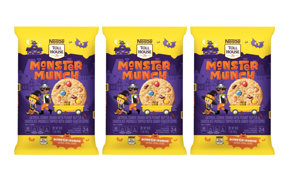 It's obvious that pumpkin is the flavor of fall, and I'm not complaining. The second September comes rolling around, pumpkin-flavored goodies hit grocery store shelves in celebration of the spooky season. There's pumpkin-flavored coffee, pumpkin-flavored ice cream, pumpkin-flavored cake — you name it. Pumpkin. Is. Everywhere. But what if you don't like pumpkin-flavored snacks? I'm sure there are Halloween-lovin' folks out there who'd rather eat something else, and Toll House has their backs. In fact, Nestle Toll House's Monster Munch cookie dough doesn't taste like pumpkins, but it's still festive AF.