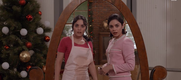In the film, Hudgens plays both Stacy, a Chicago baker, and Margaret, the Duchess of Montenaro. After being invited to compete in a Christmas baking competition, Stacy and her co-worker travel to the European country Belgravia for the holidays. Excited but longing for love, Stacy runs into the Duchess on the competition set and — surprise! — they're mirror images of each other.