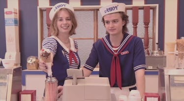 Steve is dressed up in the sailor-themed uniform along with his coworker Robin, a new character in Season 3 played by Maya Hawke. Robin is described as an alternative girl who stumbles on a dark secret in Hawkins after growing bored of her mundane job. Clearly, Robin's mundane job is at Scoops Ahoy, and it looks like Steve will be along for the ride when Robin discovers the dark secret. Check out the new teaser trailer below: