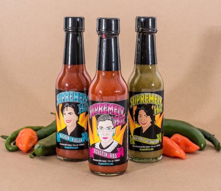 Supremely Hot Sauce, which is exclusive to Alwaysfits.com, comes in three distinct flavors which all feature a different woman who has serviced as a Supreme Court justice: Ruth Bader Ginsburg, Sonia Sotomayor, and Elena Kagan. Each bottle contains five ounces of a different hot sauce flavor and is priced at $10, but you can snag a pack of all three for $27. They were released on Friday, March 15 in honor RBG's 86th birthday, per Popsugar.