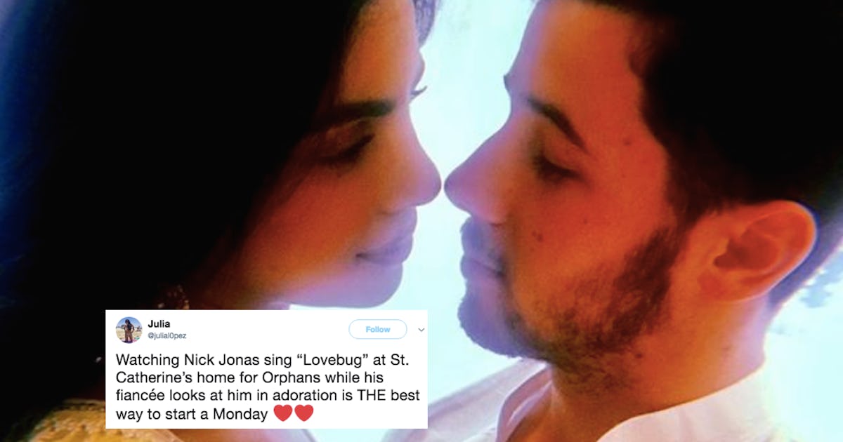 This isn't the first time that Jonas has paid tribute to his boy band roots in front of Chopra. The couple visited St. Catherine Orphanage in India a couple of months ago where Jonas decided to serenade the children with the JoBros song, "Love Bug." Don't worry, guys. There is actually video footage of this insanely adorable thing happening.