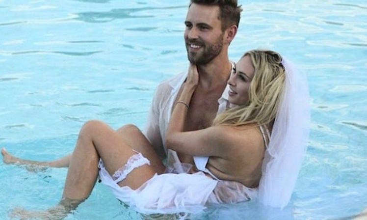Can't Corinne Olympios post an innocent throwback in peace? The Bachelor alum, who came in fourth place on Nick's Season 21, decided to pay tribute to her time on the show by sharing a photo of the two of them via social media on Monday. Cue the subsequent "outrage," as she puts it. It then appeared that Nick Viall was throwing shade at Corinne on Instagram following the photo, and now she's explaining why put it up in the first place.