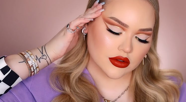 After that, she threw on a red lip and a few other finishing touches, and the look was complete. While Nikkie didn't say much about the shadow formulas specifically, instead choosing to praise the palettes' unique snappable packaging, she seemed to have no issues blending out the shades, and all in all, was satisfied with the shadows and her finished glam.