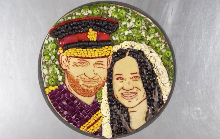 However, I know art when I see it, guys — and pizza art is definitely art. This is getting me way too excited to finally watch Markle and Prince Harry tie the knot, and even though I can't down this pizza myself, I am 100 percent admiring it from afar.