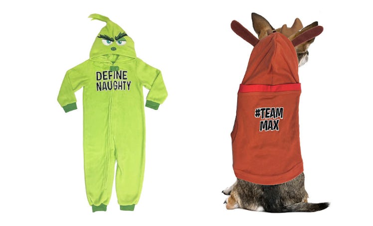 With the newest remake of The Grinch currently out in theaters, fans have been taking their tastebuds on a trip to Whoville with IHOP's new lime green Grinch menu items and a themed gingerbread house that's seriously festive. Now, Grinch merch is finally here with Party City’s Grinch onesies for you, your dog, and anyone else who wants to sport sassy one-liners like "Define Naughty" and "T'isn't the Season." It might be the merriest time of the year, but I'm all about spending my winter mornings lounging around in these snarky threads.