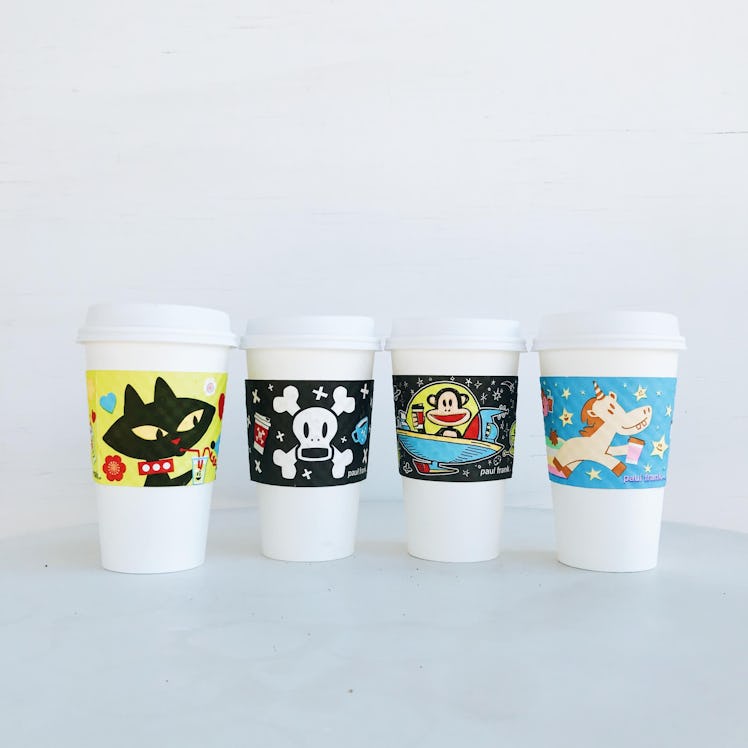 So, nostalgic '90s-era fashion and lifestyle brand Paul Frank and Los Angeles coffee hot spot Alfred Coffee have teamed up to create one-of-a-kind coffee sleeves you didn't know you needed. Really though, they're gorgeous. (Was it close-minded of me to think that coffee sleeves couldn't be pretty?) Featuring iconic Paul Frank characters — Julius the Monkey, Dazzle the Unicorn, Mika the Cat, and Skurvy the Skull and Crossbones — and the brand's signature bold color scheme, the Paul Frank coffee sleeves at Alfred Coffee are more like mini murals than heat absorbers. But there's a catch: These limited edition beauties are only available at Alfred Coffee locations. All of which are in Los Angeles, California.