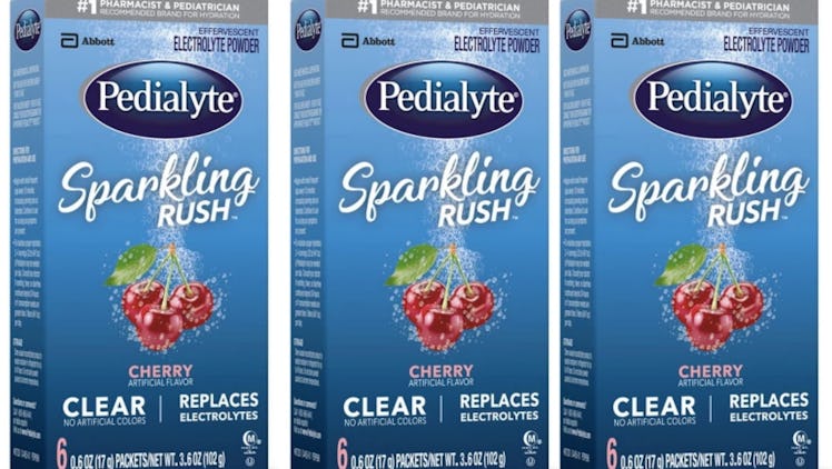Finding hangover remedies has been a task plaguing humankind since the invention of boozy beverages. It truly does seem like a terrible punishment from the party gods to wake up the night after drinking feeling like you have the flu when you don't, which is exactly why it was such a blessing when some hungover genius figured out that drinking Pedialyte — you know, that electrolyte stuff for kids — can actually help. Look, it's certainly not a "cure-all," but if you've sworn by the Pedialyte trick in the past, then you need to check out Pedialyte's new Sparkling Rush Powder Packs.
