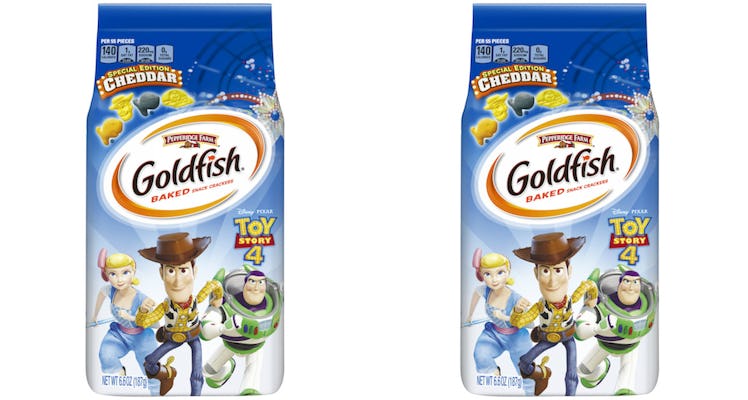 Popular packaged snack brand Pepperidge Farm is coming in clutch and bringing together two of the most nostalgic entities imaginable: Goldfish crackers and characters from the hit Disney film Toy Story. Yes, you heard that correctly — according to an email from Pepperidge Farm, the brand is going to be releasing a special edition version of their highly coveted crackers in honor of Disney's latest and greatest animated movie. Each package is set to include special Buzz Lightyear and Woody-shaped crackers, alongside the classic fish-shaped snacks, and it should go without saying that I am beyond excited.