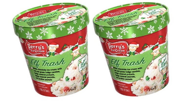 The limited edition ice cream is only available in select stores from October to December, according to Perry's Ice Cream. I checked the Perry's Ice Cream website and, sadly, Elf Trash is not sold within 25 miles of where I live. What a bummer. Hopefully, Santa is up for sharing because all I want for Christmas is a pint of Perry's Ice Cream's "Elf Trash."