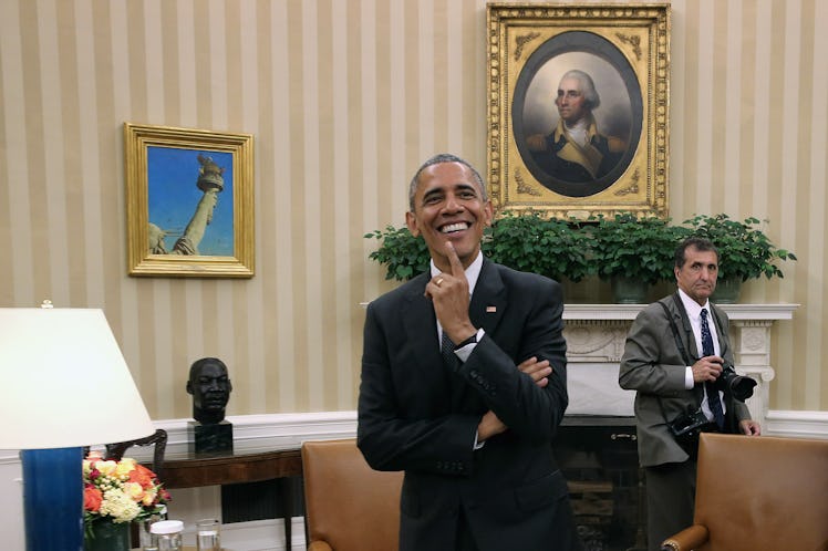 But Souza has also been known to troll Trump more directly, sharing well-timed photos of Obama doing something that Trump is currently getting excoriated over (see Exhibits A: the Mika Brzezinski post, and B: the travel ban). For anyone who got a kick out of those, this photo collage doesn't disappoint. All nine of Souza's top posts are photos of Obama being Obama, and it's one giant compilation of passive-aggressive hilarity.
