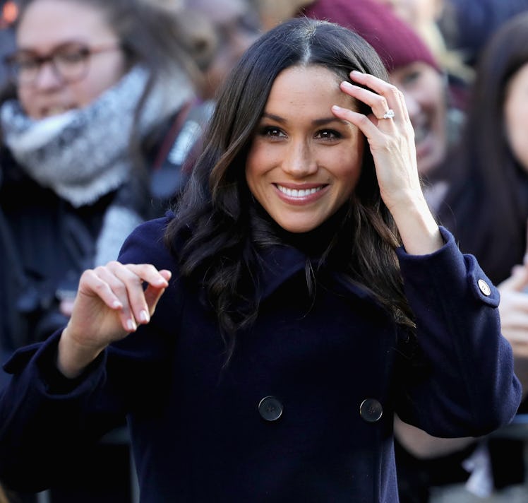 Meghan Markle and Prince Harry are tying the knot on Saturday, May 19, at St. George's Chapel at Windsor Castle. When their engagement was announced on Monday, Nov. 27, 2017, everyone fell in love with Meghan Markle's engagement ring right away. It's a beautiful ring that pays homage to both their relationship and Princess Diana. Markle was married once before, though, so what was her ring like then? Although there aren't many photos of Meghan Markle's first engagement ring, we were still able to find some and it's gorgeous. I mean, it's no royal family ring with diamonds from Princess Diana's personal jewelry collection, but it's still a beaut.