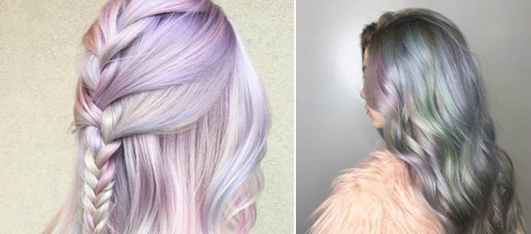 If you were a fan of the unicorn highlighters or mermaid hair hues that took over 2017, then you’re in for a treat. A new beauty trend has arisen and it's as fantastical as it gets. These photos of opal hair color prove that too much rainbow is never a thing, especially when it's in gorgeous pastel form. I'd recommend prepping your hair with a deep conditioning treatment (or two) now because this hair color technique is to dye for.