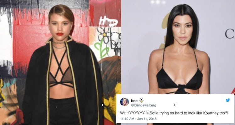 A new photo of Sofia Richie has shown the model stepping into a car, wearing all-black much like Kourtney Kardashian's style. Richie looks so eerily similar to Kardashian that many took to Twitter to express their thoughts: