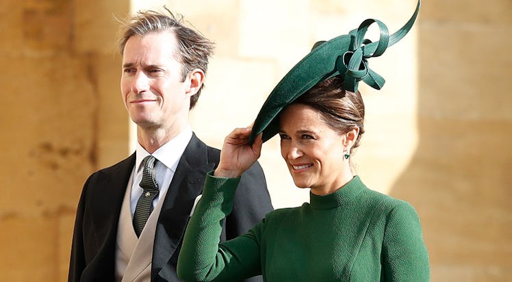 You guys, I seriously can't get over how stunning Princess Eugenie looks on her wedding day. The breathtaking gown, the perfect hair and makeup — we were expecting her to slay, and she absolutely did. All eyes were on Eugenie, but I have to admit that my eyes were also on some of her well-dressed attendees, and I have to give credit where credit is due: Pippa Middleton's outfit for Princess Eugenie's wedding is well worth noting. Considering Eugenie's emerald-encrusted tiara set the color palette for the day, Pippa's look was particularly on theme, as she embraced the shade as well.