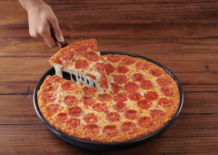 According to a press release, Pizza Hut is celebrating 60 years of life on Monday, April 30, 2018. That's 60 successful years serving up pies. Six decades, baby! And what better way to celebrate the company's birthday than with a pizza party? It's only appropriate, in all honesty. And as a gift to pizza lovers everywhere, the Hut is coming in clutch by introducing their latest and greatest creation: the Double Cheesy Crust Pan Pizza. I'm warning you, it looks just as delicious as it sounds. You may end up having to order a few pies on the spot. I mean, really, just look at it.