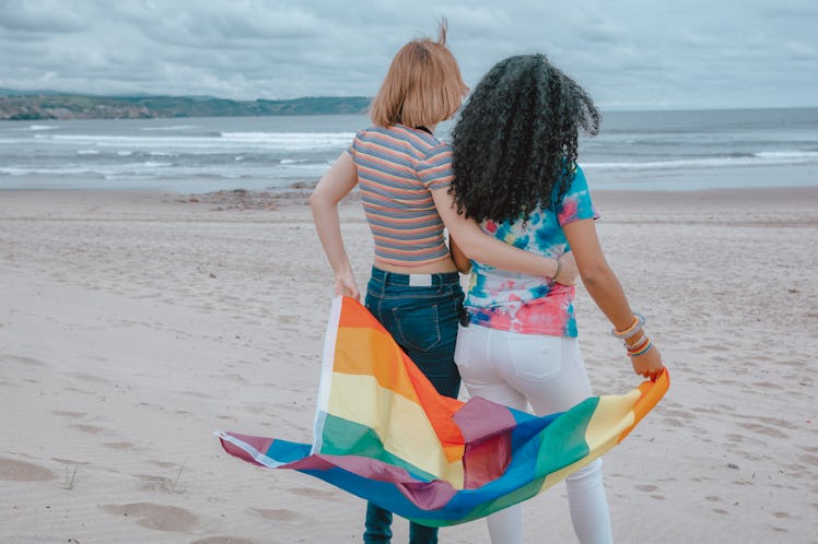 Pride is all about celebrating queerness alongside your chosen family and local LGBTQ+ community. Typically, you and your crew would spend months crafting Instagram-worthy fits with festive hairstyles and shimmery makeup on deck. You'd agonize over who'd host the pre-game, how long you'd linger downtown, and what queer tomfoolery you'd get into afterward. Sadly, this year you're probably surrounded by unopened tubes of body glitter and unworn iridescent crop tops, thanks to COVID-19. If you're a newly-out person, and Pride cancellations due to the coronavirus pandemic have put a damper on first experience, you're not alone. There's a reason it feels so personal.