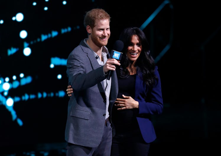 As if they haven't melted our royals-obsessed hearts enough, Prince Harry & Meghan Markle's body language on WE Day UK 2019 was everything you love to see in your favorite celebrity couple, especially on a day of service. Only Prince Harry was slated to appear and give a speech at the activism event, but brought Meghan up on stage with him as a surprise. Founded in 1995, the WE Charity puts on WE Day each year to mobilize British kids and teenagers to give back in their community and beyond. Naomi Campbell, Liam Payne, and Iskra Lawrence also made appearances.