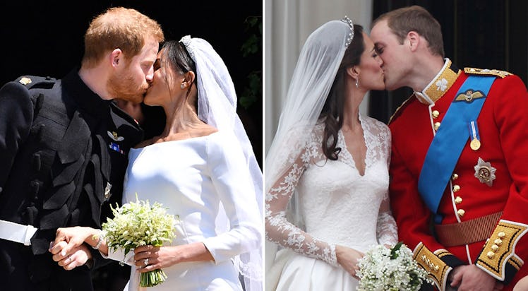 The royal wedding kiss shots are iconic. They're never dramatic, no one gets bent backward, there are no grand sweeping gestures. This is, of course, the royal family, and decorum should be maintained at all times. When the former Prince Philip of Greece and Denmark and then-Princess Elizabeth married in 1947, their kiss was not actually pictured in the papers. Instead, a photo of the two waving from the balcony sufficed. In 1981, Prince Charles did a very chaste "kiss on the hand" to Diana, Princess of Wales for the crowds.