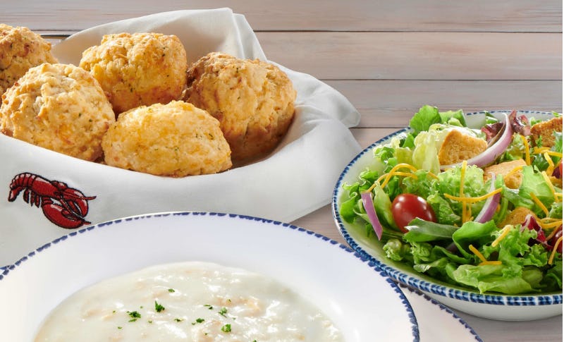 Considering that the Cheddar Bay Biscuits are a major incentive for me to visit a Red Lobster restaurant, I was pumped to see that for just $8.99, you can now get endless servings of a soup and salad of your choice along with all the Cheddar Bay Biscuits that your stomach can handle.
