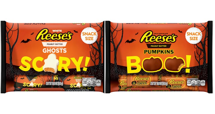 Before you gush over your Halloween costume, you'd better suit up with a few tasty treats. Thankfully, Reese's is here to help you celebrate with three Halloween-themed candies that you can sink your fangs into. Reese's line-up of October 31 candies is already available for purchase at retailers nationwide, according to Hershey. You can get a head start on living your best Halloween life a couple of months early. (Your taste buds will thank you.)