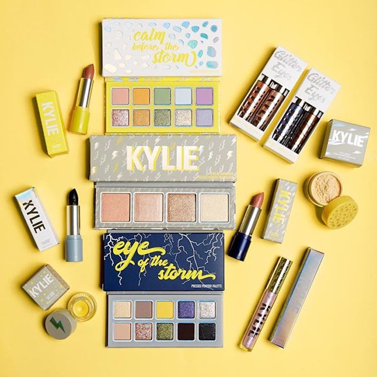 On Feb. 28, Jenner released The Weather Collection Highlighter Palette ($44, kyliecosmetics.com), the Eye of the Storm Palette ($40, kyliecosmetics.com), the Calm Before The Storm Palette ($40, kyliecosmetics.com), three Matte Lipsticks ($18, kyliecosmetics.com), two sets of Glitter Eyes Duos ($40, kyliecosmetics.com), Flash Glitter Gloss ($16, kyliecosmetics.com), Lightning Bolt Ultra Glow ($14, kyliecosmetics.com), and a Yellow Eyeliner Pot ($14, kyliecosmetics.com), and the products are flying off her website.