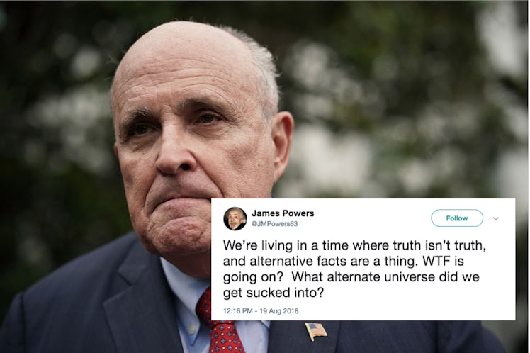 Needless to say, Twitter was also not having it. People were equating Giuliani's "truth is not the truth" quote with other controversial statements from the Trump administration (I'm still scratching my head over the whole "what you’re seeing and what you’re reading is not what’s happening" one, TBH) and picking up on the general Orwellian vibes of the whole situation.
