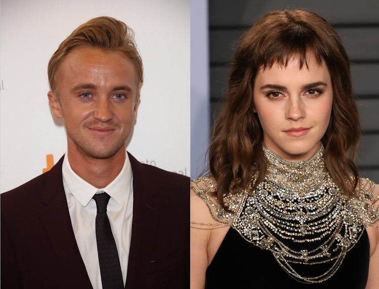 If you shipped Dramione back in the day, Rupert Grint's quote about Emma Watson and Tom Felton's "romance" is about to make all of your childhood dreams come true. In an interview with Entertainment Tonight on Nov. 18, Grint opened up about the off-screen chemistry shared by his two Harry Potter co-stars. While he made it clear that he wasn't trying to cause any drama or spread any rumors about them, Grint did admit that Watson and Felton had a little somethin' going on between them when they were young. “There was always something. There was a little bit of a spark,” Grint shared. “But we were kids. It was like any kind of playground romance."