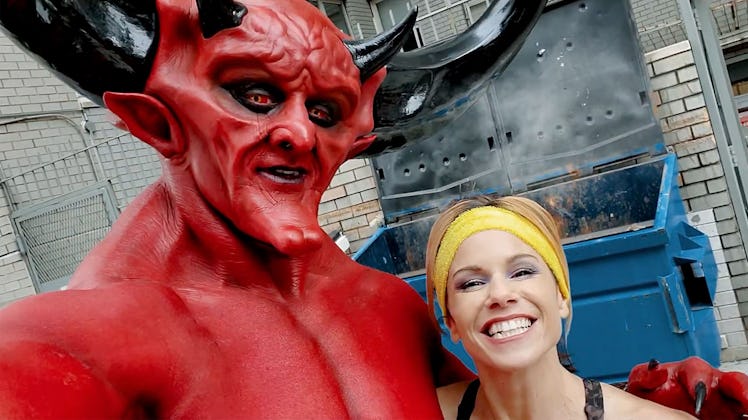 Set to Swift's new "Love Story" recording, the commercial tells Satan and 2020's love story in 90 seconds, showing clips of them feeding each other hot peppers in an empty football stadium, doing yoga in an empty gym, and stealing toilet paper from an empty movie theater — and then taking a selfie in front of a literal dumpster fire. In the end, Satan wistfully tells 2020, "I just don't want this year to end" as the city goes up in flames around them. It's exactly what you'd expect from Reynolds, and it's the perfect love story for this dumpster fire of a year.