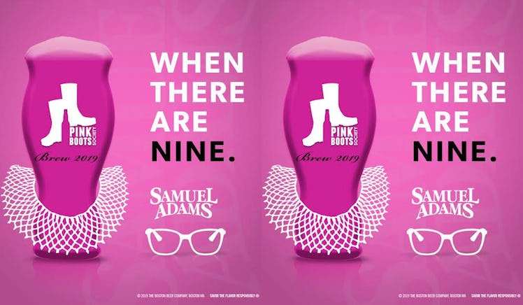 Boston-based brewing company Sam Adams has just created the beer of my wildest dreams — a sip that's 100 percent dedicated to my girl, Supreme Court Justice Ruth Bader Ginsburg. The brew itself is categorized as a Belgian Brut IPA, and it's called "When There Are Nine," according to CNBC. If that phrase doesn't ring a bell instantly, let me jog your memory.