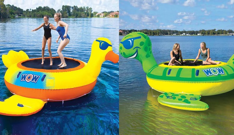 Sam's Club stores are quite literally bringing the fun this summer by offering a floating trampoline called the WOW Novelty Water Bouncer, according to the brand. They come in two lovable designs — a duck and a turtle. Both trampoline sections span almost 6 feet wide (which provide for tons of bouncing room), and they comes with anchor systems so the structures don't float away. It's pretty genius, really.