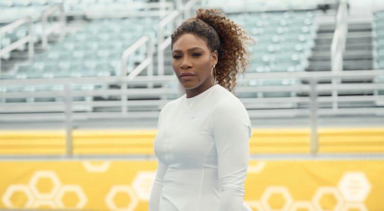 Really, Williams' ad with Bumble (which you can watch here) stands out for many reasons, but the tiny glimpse viewers get into her wedding day is seriously adorable. The ad, which runs about 30 seconds, features Williams explaining why it's important for women to make the first move — in your career, with your friends, and with your love life. Bumble is all about women making the first move (literally, men can't message women until women message them first), so it makes sense that the brand would want to partner with a GOAT like Williams, who regularly advocates for equality. In a statement about the ad, Williams said, "I want women to feel empowered to find their voice and use the power within to create change, to lift each other up, and to never let the world tell us we can't — because we can, and we will," AdAge reports.