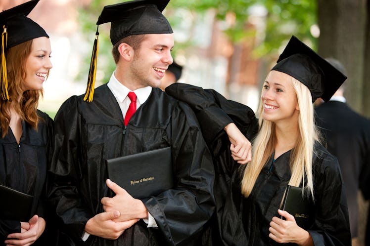 Sh*t gets real after college graduation. You've just spent four years in a purgatory — albeit a very fun one — between childhood and adulthood, between playing hard and working hard, and between thinking you know who you are and really finding out who you are. If you met a romantic partner during this lovely-but-strange-limbo known as college, you might be wondering if you should break up before graduation, or if that's all too strategic. As with all matters of heart versus brain: how in hot hell is one to figure out what to do?