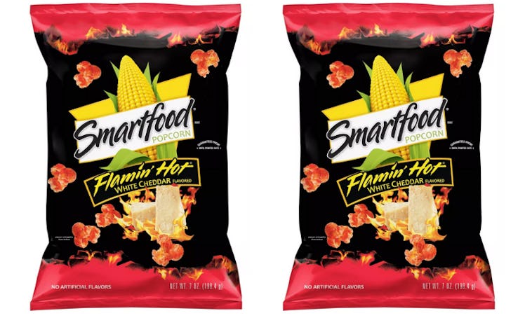 That being said, I'm just going to come right out and say that the latest Flamin' Hot-inspired mash-up might just be better than the original. Popcorn company Smartfood first debuted Flamin' Hot White Cheddar Flavored Popcorn earlier this year with a limited release at Walmart and Sam's Club stores. Unsurprisingly, the potent flavor combination of white cheddar and Flamin' Hot spice paired with the naturally airy and crunchy texture of popcorn was a huge hit and had hungry customers clamoring for more. Seriously, though, it's like your favorite food groups got married and had a baby, and the cheese-laden, Flamin'Hot spiced result is undeniably mouthwatering.