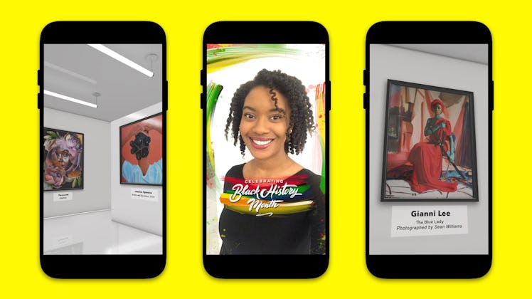 There are so many ways to celebrate Black History Month, from learning about the unsung heroes of Black history to donating to organizations uplifting Black communities. In 2019, many companies are contributing to the conversation around Black History Month in unique ways, including popular social media app Snapchat. Snapchat's celebration of the month not only includes a new lens, but also features an entirely new way to enjoy art. Snapchat's Black History Month virtual gallery is celebrating Black creators in a super inventive way and you'll definitely want to check it out.
