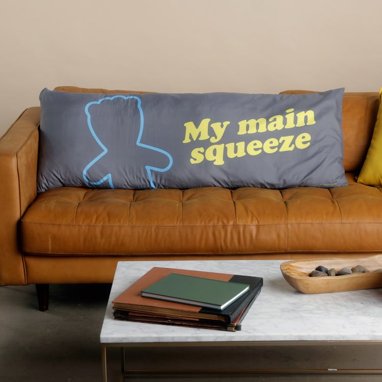 The shop offers everything from cozy blankets to body-length pillows to Sour Patch Kids Conversation Hearts, but the "No Baggage" tote and the "My Main Squeeze" pillow caught my eye with their cute messaging and fun designs.