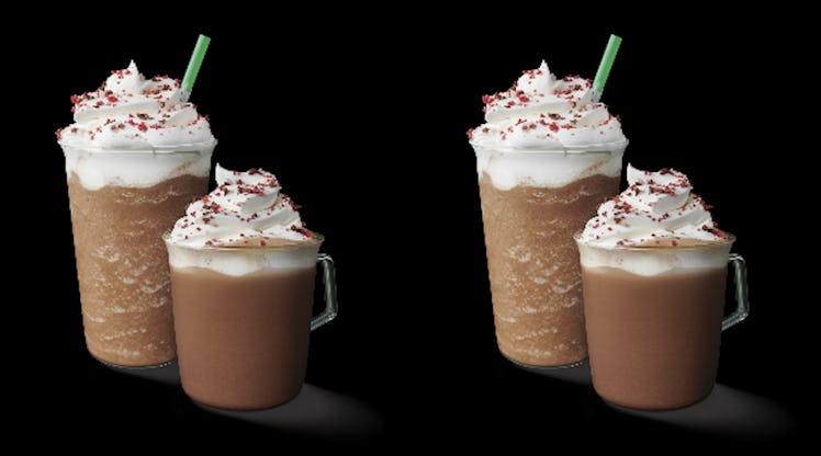 The Cherry Mocha will be returning to Starbucks locations nationwide for the second year in a row as of Feb. 7, and if you couldn't tell, I am seriously stoked. The undeniably sexy drink highlights rich flavors of chocolate and tart notes of cherry, according to the press release, combining hot espresso with slightly sweet mocha sauce, steamed milk and — of course — candied cherry syrup. All of that is topped with whipped cream, and sprinkled in sugar and cocoa Valentine’s sprinkles. Aside from the fact that it tastes absolutely divine, it's straight-up gorgeous, and is sure to put you in the V-Day spirit, if you somehow aren't at that point already.