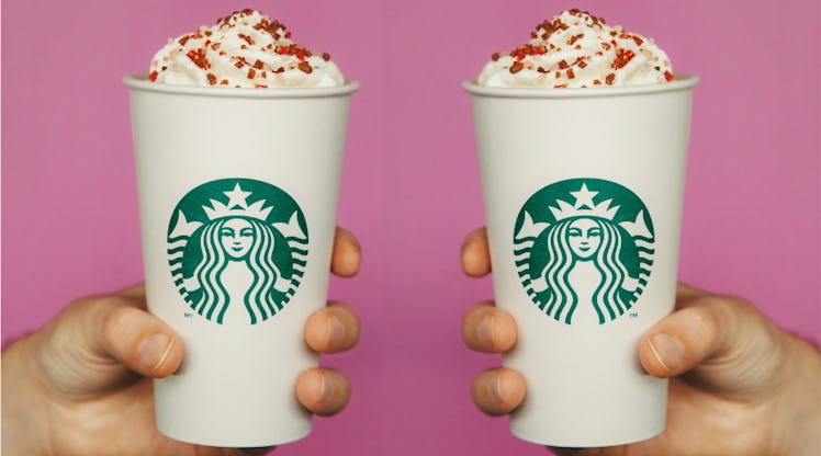 Today's Happy Hour deals include drinks like the incredibly delicious Cherry Mocha. The return of the espresso-based drink, which is available starting on Thursday, Feb. 7 aligns perfectly with today's Starbucks Happy Hour. The festive drink is made with Starbucks' signature espresso, Mocha sauce, and cherry flavored syrup. The ingredients are blended together for an unbelievably smooth finish and just the right amount of sweet. To really seal the deal, Starbucks adds a healthy dose of whipped cream and the most adorable pink and red cocoa Valentine sprinkles.