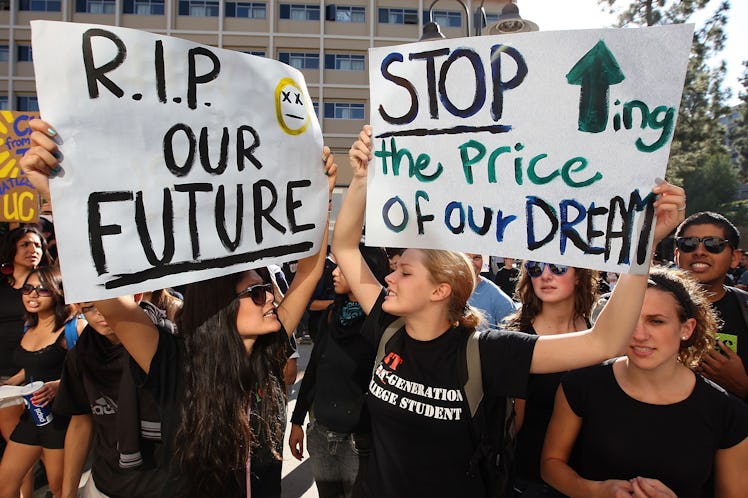According to a Dec. 17 report from Bloomberg, U.S. student loan debt reached up to $1.465 trillion last month, double the amount of outstanding debt at the official end of the recession in June 2009, which was $675 billion. In addition, the report shared that it's becoming increasingly difficult for borrowers to pay off their loans. According to the study, students who took loans out in 2012 have had a more difficult time paying them off compared to students who received loans before 2012. And this isn't an issue that's only impacting younger generations: older Americans are still faced with heavy student loans. According to Bloomberg, 1.8 million American borrowers 62 and older owed a total of $62.5 billion in federal student loan debt as of September 2018.