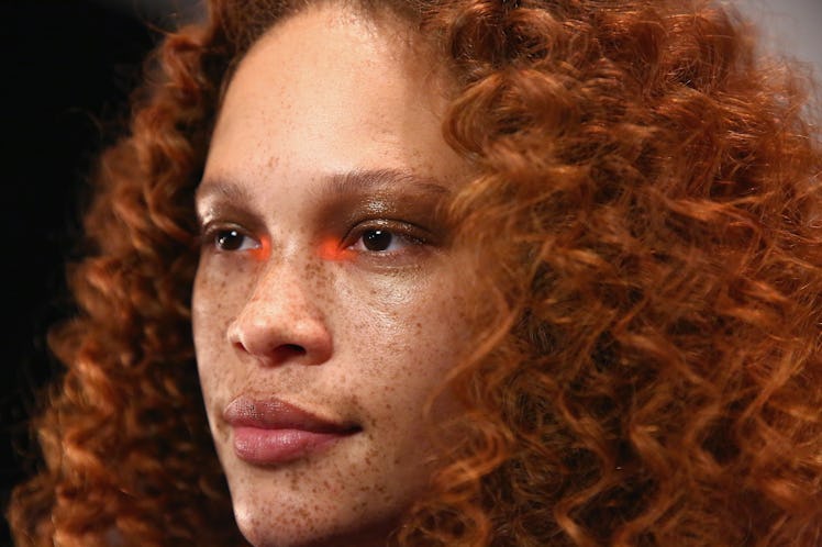 'Tis the season for uber bright everything and summer 2019 makeup trends prove it. One especially pigmented look centers on neon eyeshadow, and lots of it — think lids covered from tear duct to outer corner in solid highlighter-like hues, or blasts of blinding shades at the inner corner of each eye. Designers the likes of Christian Siriano, Ashish, Alice + Olivia, Byblos, Chromat, and more all tried out the electric trend on their spring/summer 2019 runways, proving that going all out with your seasonal makeup look is most definitely du mode.