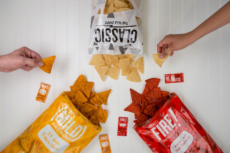And now Taco Bell has graciously gifted the world with what I think is one of the best fusion products to date, because the chain has packed the favor of both of their hot sauce options into tortilla chip form. According to a press release, beginning in May (and hopefully in time for all Cinco de Mayo festivities!), you'll be able to pick up a bag of Taco Bell brand Mild or Fire hot flavored chips. How has this not been a thing sooner?! And they even made a classic tortilla chip for anyone that doesn't enjoy a little extra kick in their chip, so there really isn't an excuse to not buy a bag to take home.
