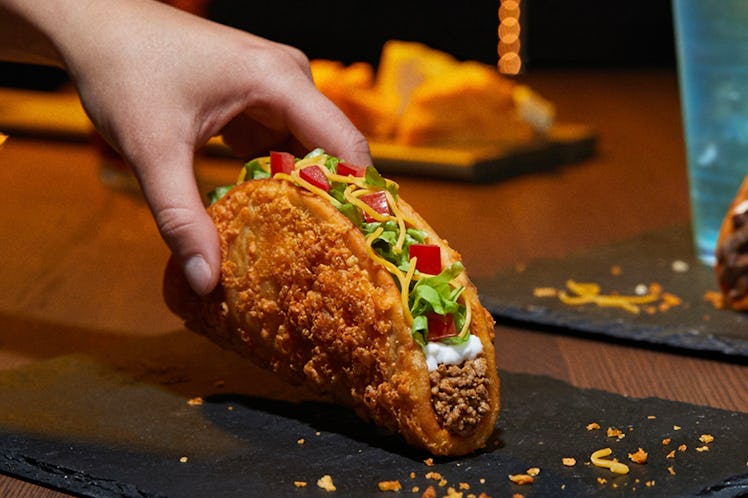 Prepare yourselves, because the Toasted Cheddar Chalupa is about to get your mouth watering. According to a press release, it envelopes your choice of meat (seasoned beef, chicken, or steak) with fresh lettuce, diced tomatoes, cheddar cheese, and sour cream into a shell with aged cheddar cheese baked right onto it. It's going to be released nationwide for a limited time as of Sept. 12, and it's pretty safe to say my stomach is READY.