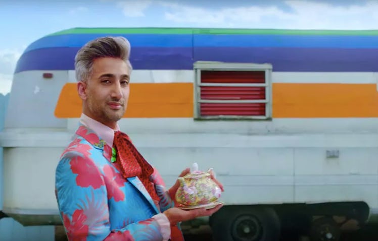 Tan France is a queer icon, but he still hasn't gotten used to that title yet. He and the Queer Eye Fab Five shot to stardom when their Netflix reboot of TLC's Queer Eye For The Straight Guy aired in February 2018. Since then, the show has aired two more seasons (with Season 4 right around the corner), they've won Emmys, and most recently, they all appeared as part of the cast of Taylor Swift's "You Need To Calm Down" music video. The video featured a litany of queer celebs, and Tan France's story about filming Taylor Swift's "You Need To Calm Down" music video shows that he just can't calm down about the fact that this amazingly queer video happened.