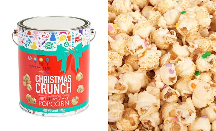 If you're a Target shopper with a sweet tooth, you might know that Dylan's Candy Bar teamed up with the go-to department store in early 2018 to create irresistible candy collaborations. In honor of the holiday season, the companies joined forces to create the "Dylan's Candy Bar Holiday Popcorn Tin" — aka Christmas Crunch — which is now being sold at Target. According to the product's online description, the six-ounce Christmas Crunch tin consists of birthday cake-flavored popcorn that'll make the holiday season so much sweeter.