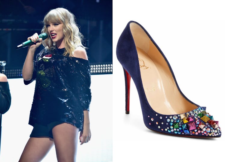 No, your eyes aren't deceiving you. Taylor Swift's shoes are worth $1,195 (or more if you have to pay a sales tax — they come out to $1,301 for me and my fellow New Yorkers). The pumps are made of suede and are decorated with rainbow pyramid studs and Swarovski crystals. The heel measures in at a whopping four inches and now I really understand why Swift took them off. The Keopump Flat shoes would definitely be easier to walk in, but they'll still put a dent in your wallet at $995 (Christian Louboutin).