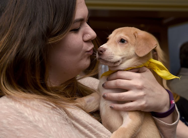 Let's reflect on this spectacular lineup. From Buttons, the cocker spaniel, to Kelly Barkson, the pitbull-lab, each mighty pup is furry and fluffy — and each of their smushy faces have quite honestly already won my heart. According to Rolling Stone, each dog was rescued from Houston, Puerto Rico, and Florida's 2017 natural disasters, and Animal Planet reportedly worked with 48 animal shelters in 25 different states and U.S. territories to recruit the wiliest and most adorable Puppy Bowl players.