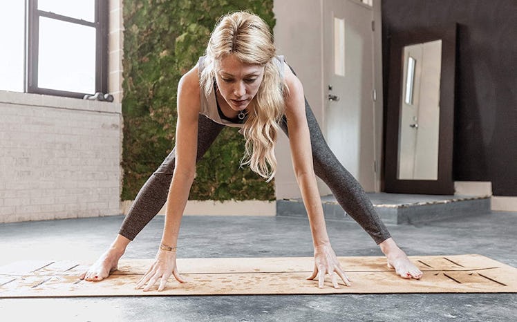 Made by the popular yoga brand Gaiam, this cheap yoga mat has all the benefits of cork without a hefty price tag. It has an all-natural, sustainably sourced cork layer that provides nonslip grip, and it has a nontoxic rubber base with a textured tread for better traction on your floors. This yoga mat measures 68 by 24 inches, so it's slightly smaller than the others on this list, but it still provides good padding with 5 millimeters of thickness. It also weighs 4.5 pounds, which isn't too heavy to carry around. You can keep it classic with the basic design pictured above, or check out the mandala-printed option to bring an extra pop of style to your studio. Gaiam warns that this mat may have a strong scent when it's first unwrapped, but that will quickly dissipate if you air it out for a few days before using.