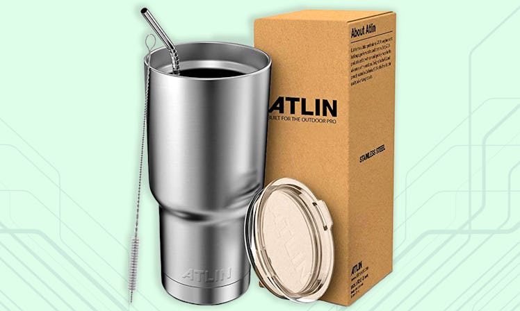 Why it's great: The stainless steel, vacuum-sealed mug is slightly taller than the one above, boasting just four easy-to-clean parts: a tumbler, a lid, a lid cover, and a reusable straw. The straw is a sustainable alternative to single-use straws, and fear not — this unit comes with a straw cleaner to ensure you're able to clear out any grime. Its lid doesn't lock as securely as some of its counterparts (it will leak a bit if you turn it completely upside down); however, it fits in cup holders and has all the perks of similar brands at the lowest price.